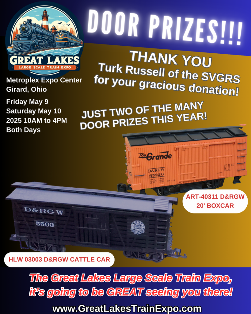 36 days and counting till the Great Lakes Large Scale Train Expo and the door prizes keep coming! We will be giving away multiple door prizes on the hour, every hour at the Expo because we’ve had so many donated!